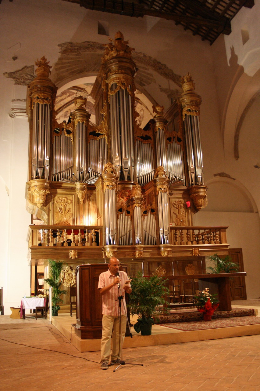 Il festival e' entrato nel vivo con il concerto - spettacolo di Daniele Rossi dal titolo Italia - Germania 4-3!!! Grandissimo successo con 3 brani tedeschi e 4 ottocenteschi italiani. Con l'aiuto di 2 percussionisti alla grancassa e ai piatti, Daniele Rossi ha trasformato il Dom Bedos in un gigantesco Serassi! I colori uditi hanno dell'incredibile, con una sequenza di cambi registri da panico operati dai due registranti Menossi-Paniconi! Ho visto il pubblico a bocca aperta per molto tempo ascoltando le acrobazie di Daniele Rossi: a volte mi sembrava di udire 3 mani!! Veramente un bellissimo programma!