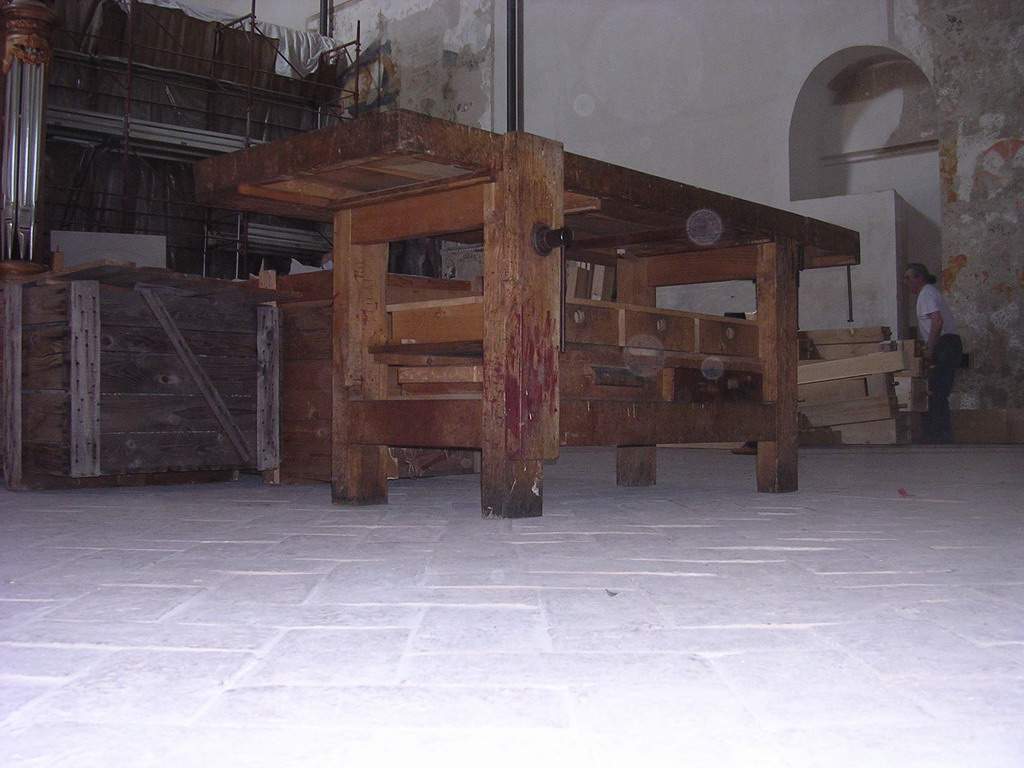 Dopo 4 anni di lavori, finalmente inizia il montaggio presso la Chiesa di San Domenico in Rieti. Lunedi' 16 giugno il primo trasporto (ce ne vorranno altri 3) e' arrivato in Rieti. Numerose visite all'Organo finalmente giunto a Rieti hanno avuto luogo durante la mattinata. Sono state scaricate 8 tonnellate circa di parti dello strumento e gli operai di Formentelli hanno finalmente iniziato il montaggio dell'organo monumentale sulla base appositamente predisposta.