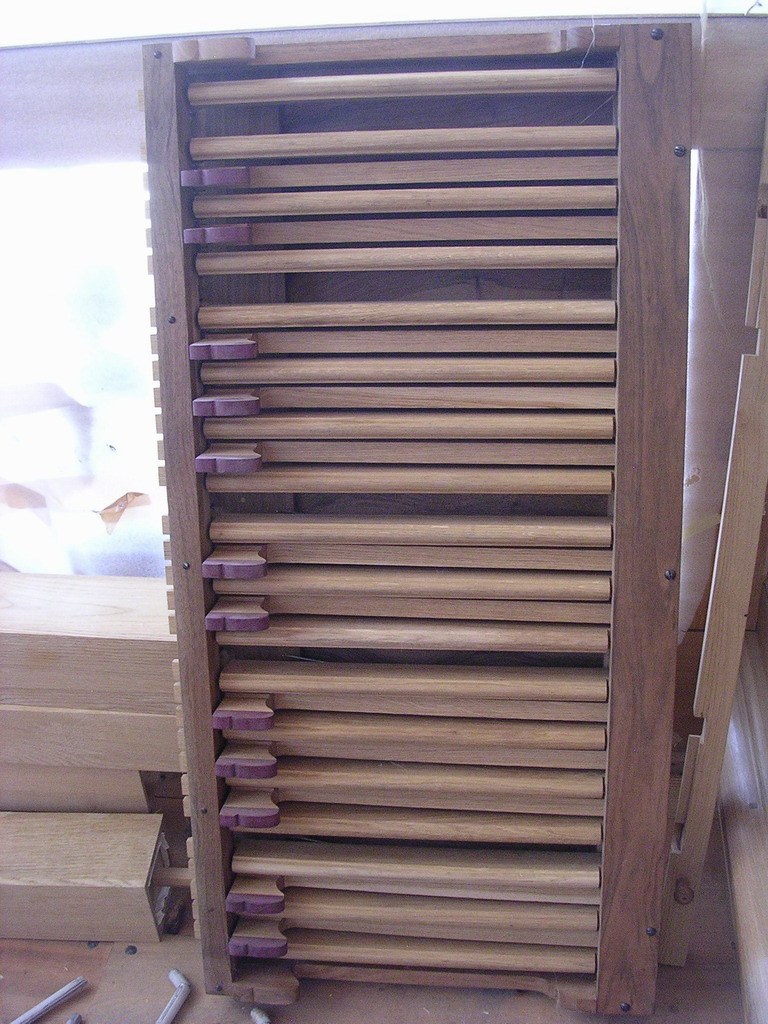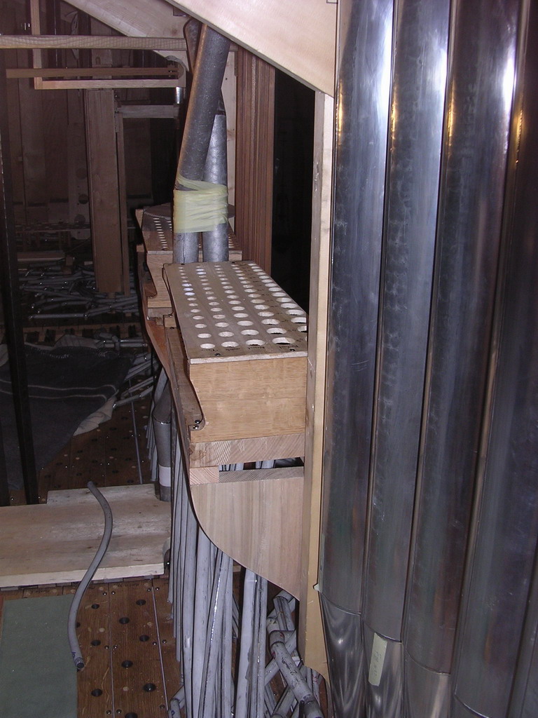 Rientrati finalmente a casa dopo 2 mesi di lavoro ininterotto gli artigiani Silvio, Augusto, Lucio e Antonio, il cantiere lascia il posto all'esperto Marco dei trasporti, del vento e delle canne, che provvede a installare i numerosi trasporti tra somiere e canne di grandi dimensioni, nonche' la sistemazione dei somierini del cornetto GO e di innumerevoli dettagli.
