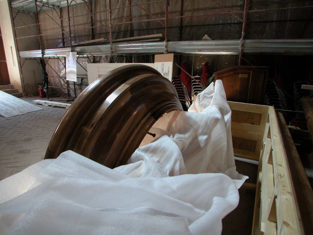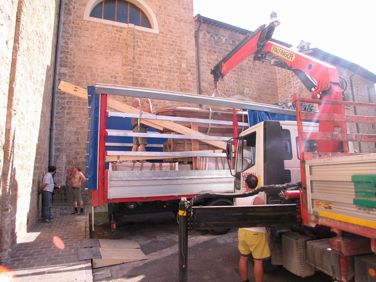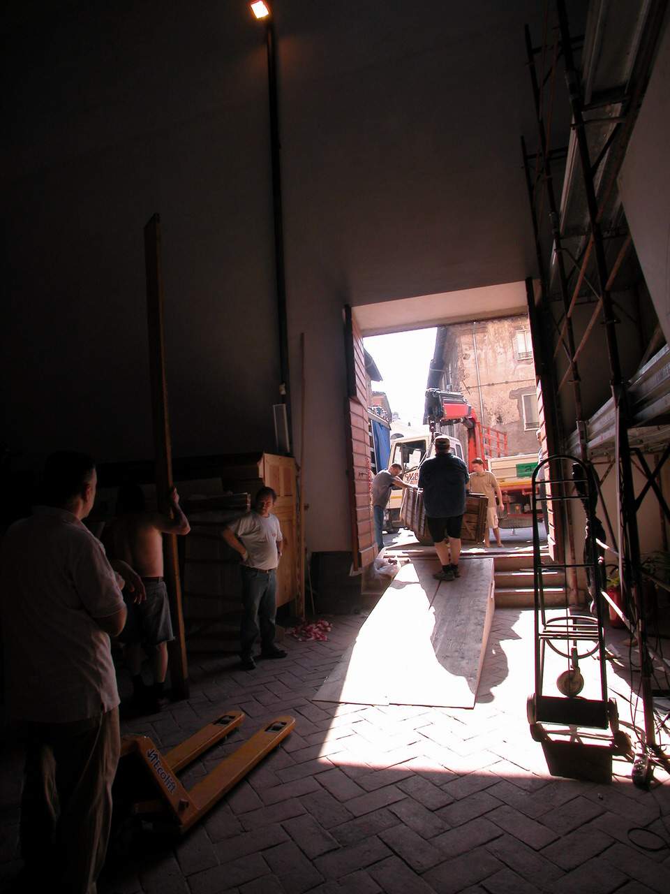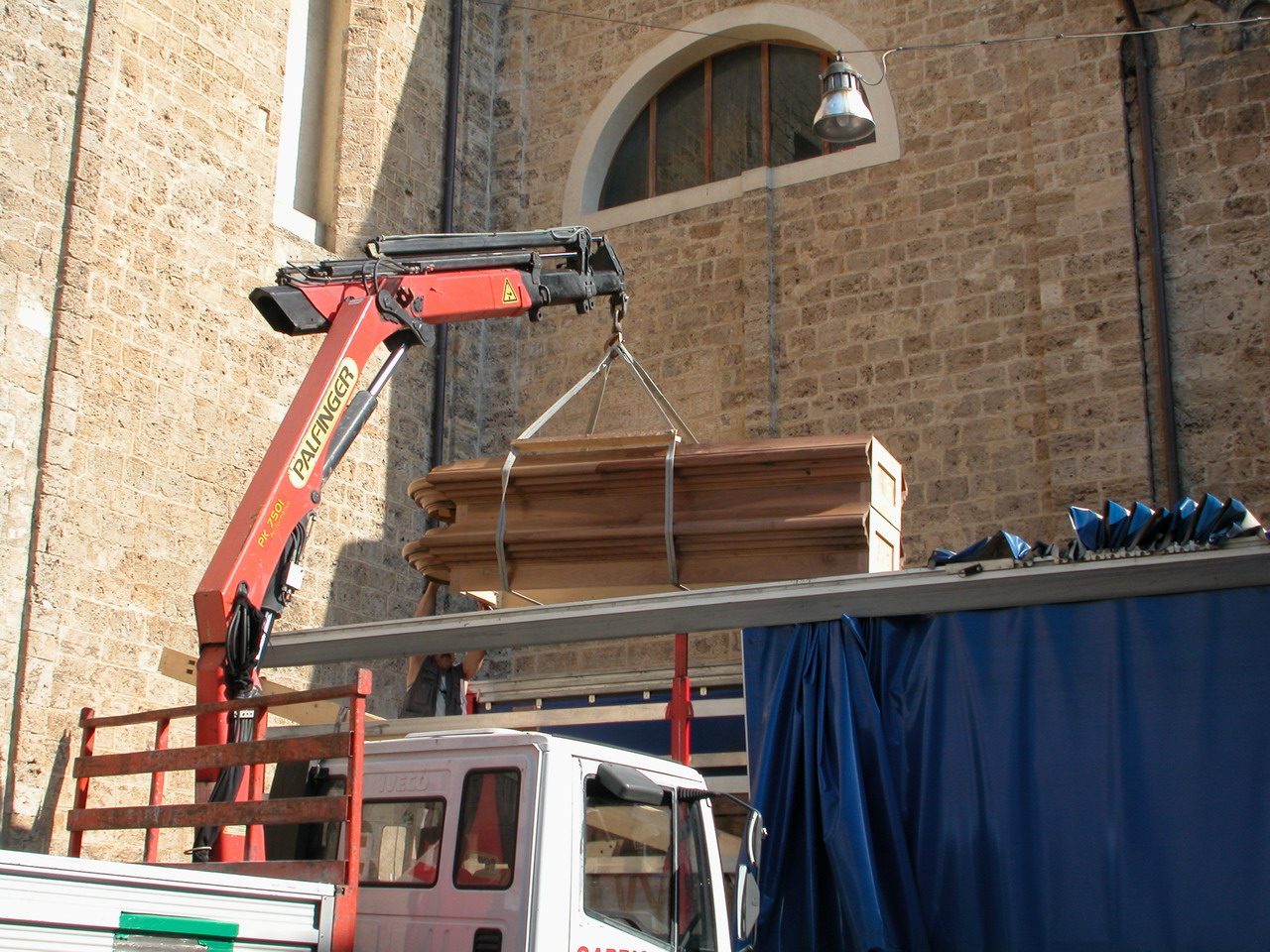 Foto dello scarico del trasporto Torri , casse contenenti canne e molte parti accessorie. Sono arrivate le tastiere.