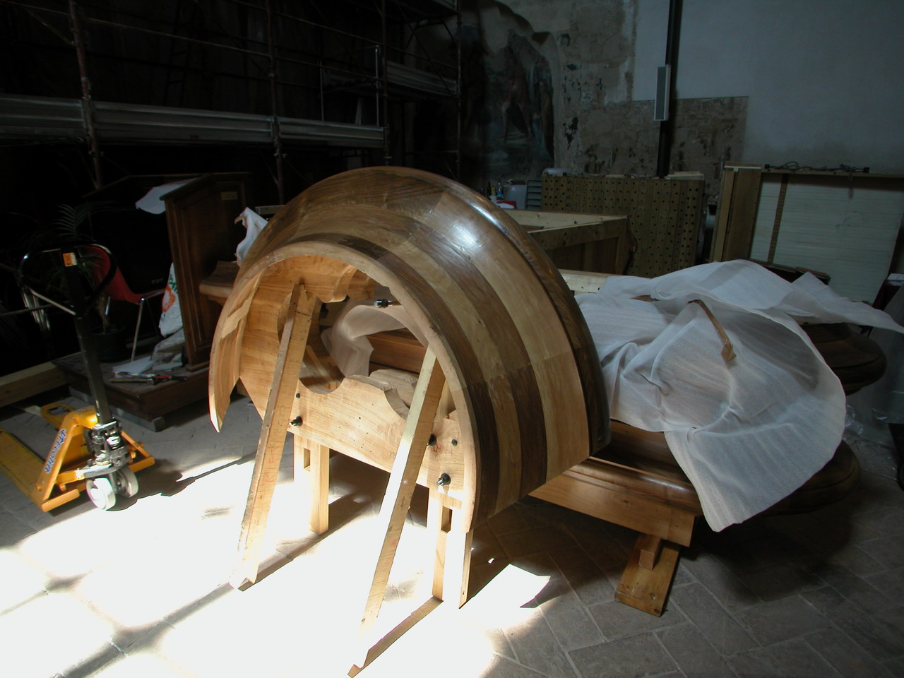E' stata posta in opera la scala d'accesso posteriore e la bellissima balaustra della cantoria.
