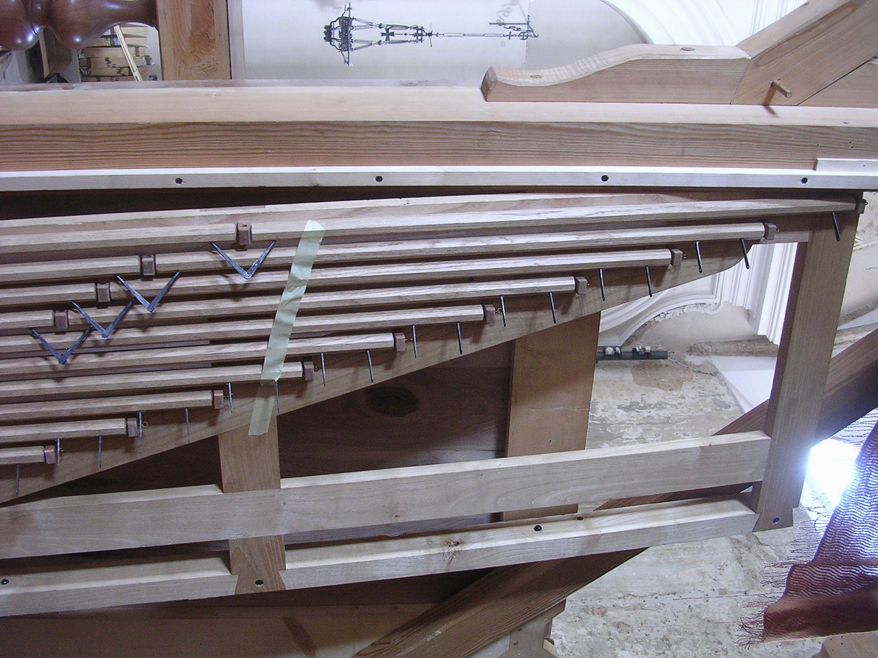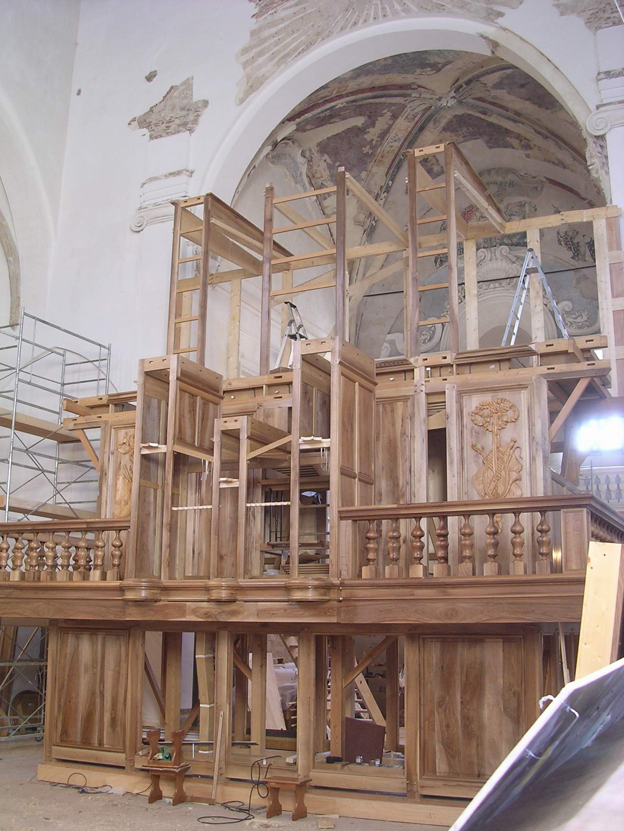 Utilizzo della gru per il sollevamento di parti pesanti e di tutti i somieri del grande organo e del pedale oltre il piano del grande organo